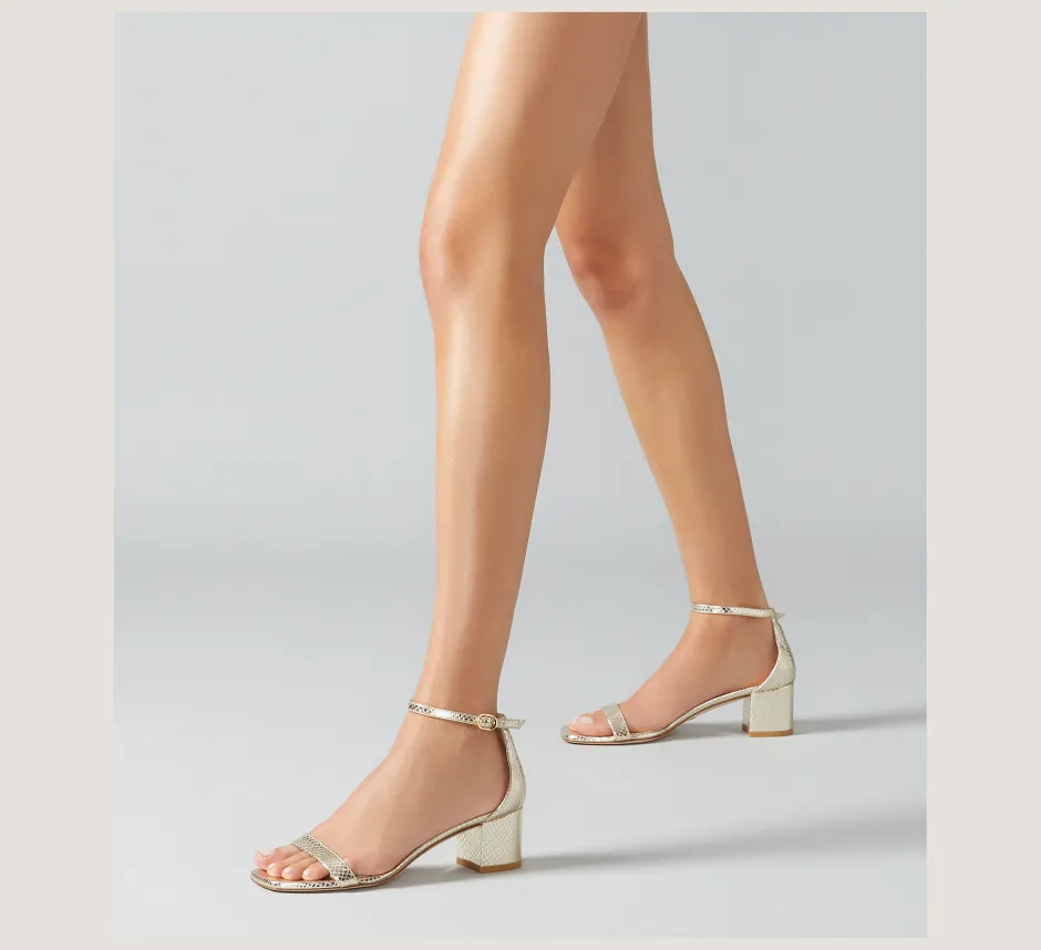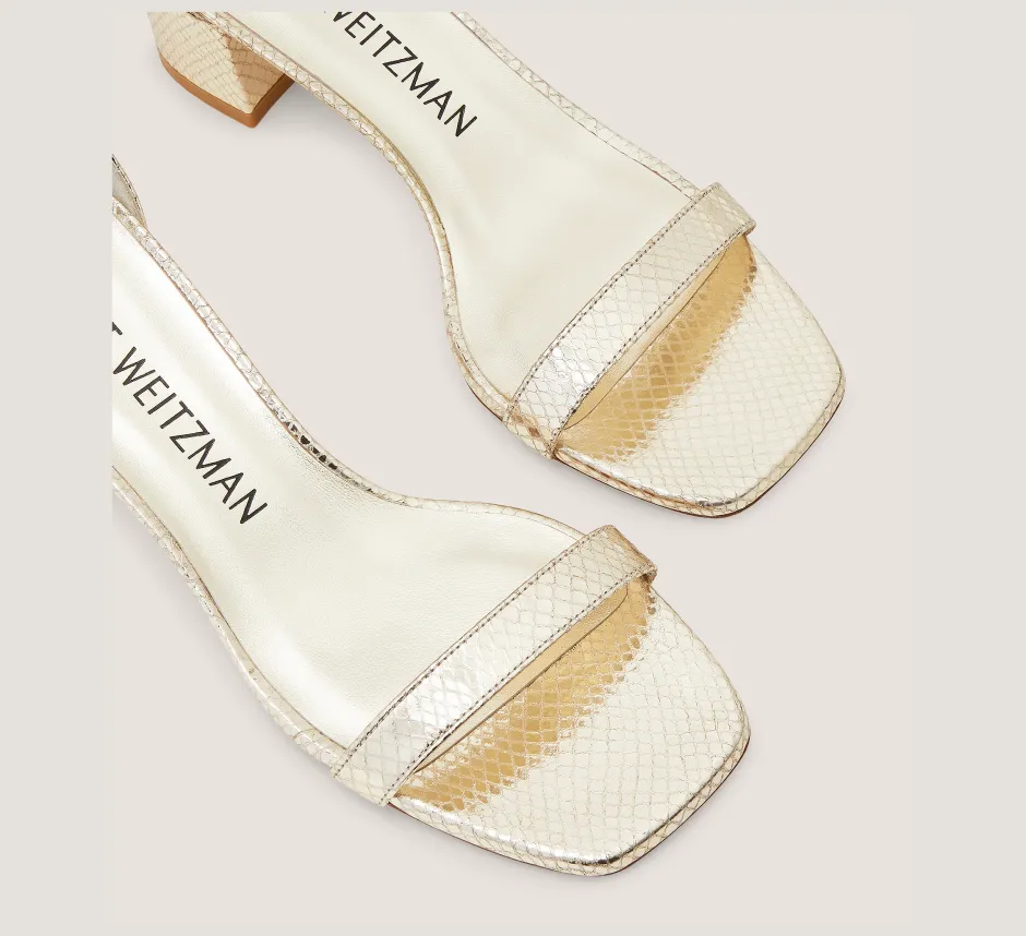 SKU: 91417665d3ddc23f18917745 Categories: Mid Heel Sandals, SANDALS, SANDALS, Sandals, SHOES, Trending: Block Heels Tags: Metallic Snake Embossed Leather/Platino Gold, Stuart Weitzman Brand: Stuart Weitzman