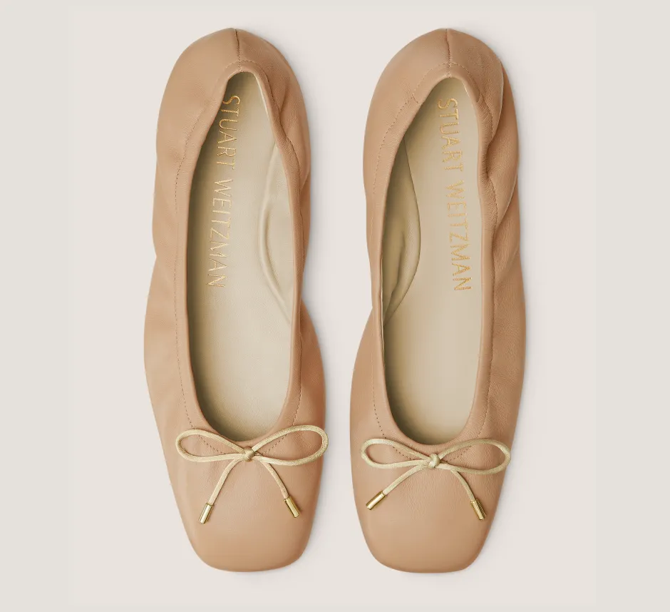 The BARDOT BOW FLAT delivers our sleek take on the ballet flat — a look that is at once timeless and on-trend. Crafted by SW artisans in Spain, it features a bow accent with metallic tips and a modern, rounded-square toe that further imparts polish to the design. Its gathered topline detail ensures it molds perfectly to the foot for a flawless and comfortable fit.