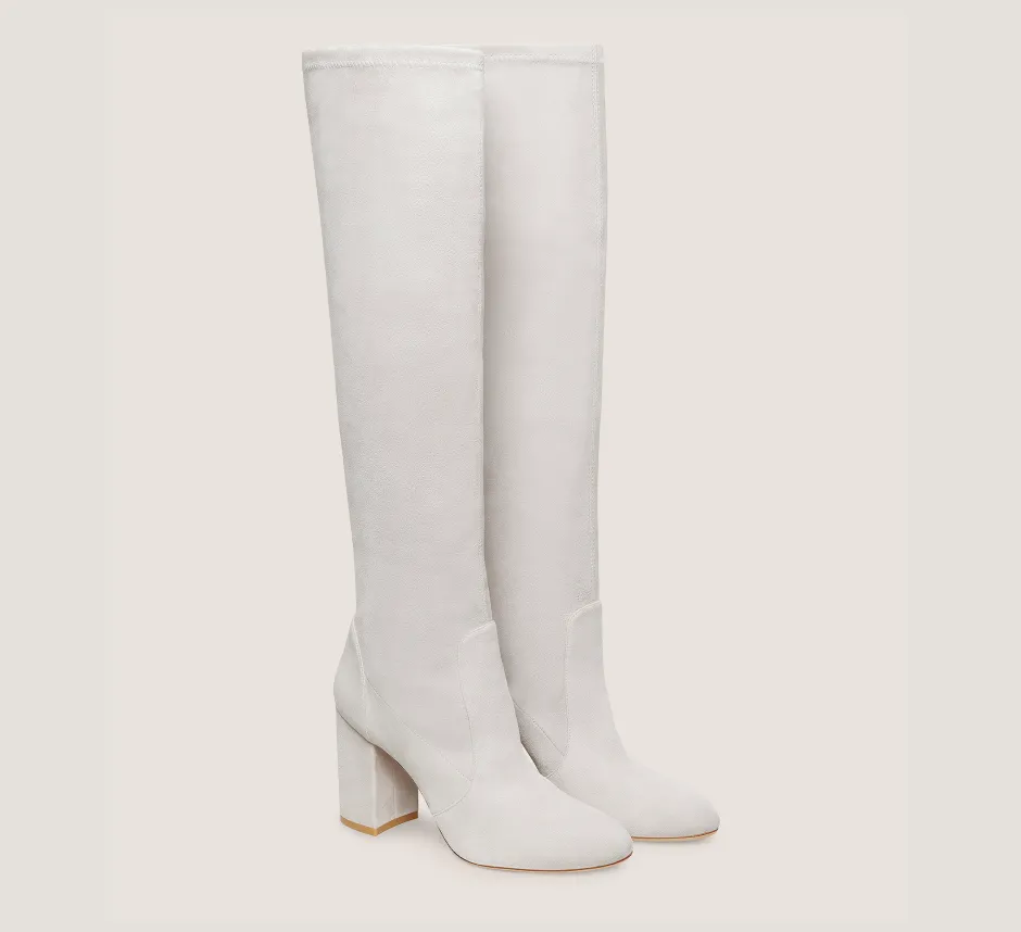 The YULIANA 85 SLOUCH BOOT defines modern versatility: Crafted by SW artisans in Spain, it features a modern, relaxed construction and is engineered to be worn two ways: pulled up as a stretch knee-high boot or scrunched down as a slouchy knee-high boot. Inspired by our best-selling block-heel YULIANA BOOTIE, it features the same polished silhouette and is further elevated by an 85-mm block heel.
