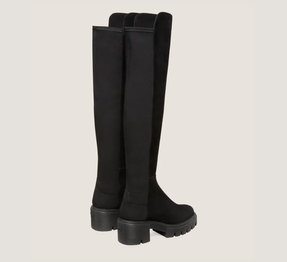 The 5050 SOHO BOOT infuses a bold new attitude into our iconic 5050 back-stretch boot look: It is defined by our downtown-inspired SOHO lug sole, which features a 60-mm block heel. Crafted by our artisans in Spain, this over-the-knee boot is part of our 5050 Collection. It is engineered with our industry-leading half-leather, half-microstretch construction for a flawless, comfortable fit — complete with a contrasting front shaft that extends slightly above the knee.