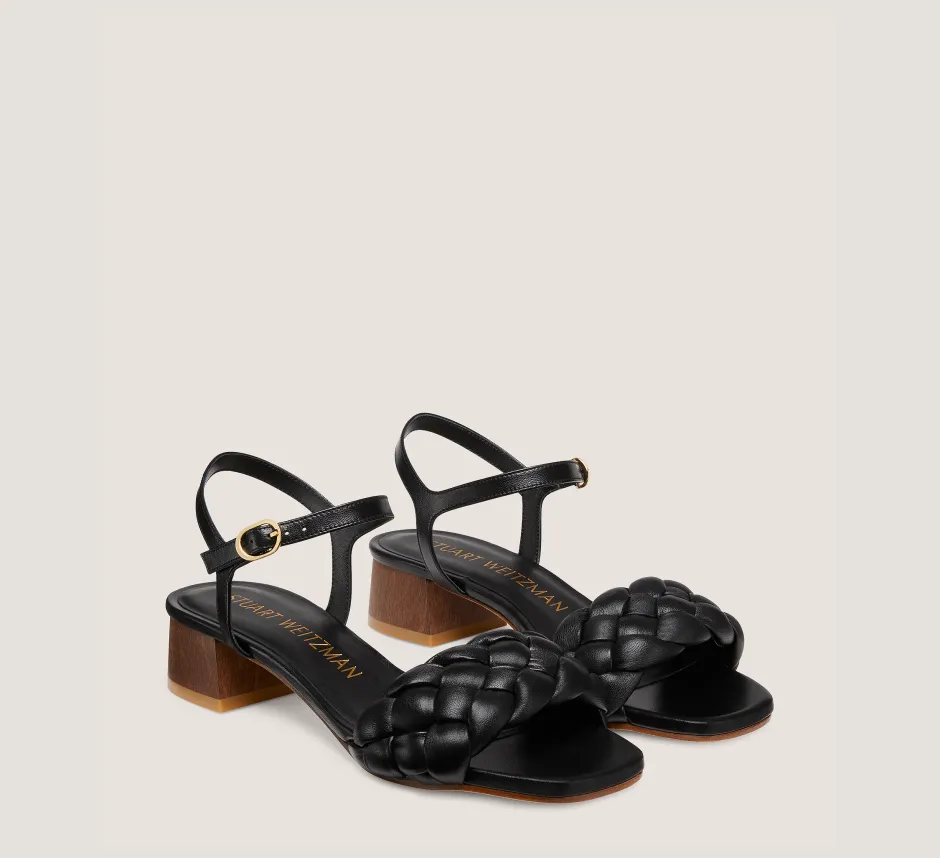 The BRAIDA 35 SANDAL, constructed with a luxurious woven accent, nods to our signature artisanal craftsmanship. Its wearable, 35-mm block heel and modern, angular square toe make it a stylish must-have for day and night.
