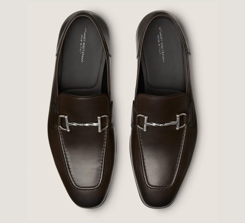 The SIMON TWISTBIT LOAFER features our exclusive TWISTBIT ornament, our interpretation of the timeless horsebit detail — with a twist. Crafted by SW artisans in Italy, this sleek, versatile silhouette takes a style-meets-function approach to the classic loafer. It features a decidedly polished, squared-off toe, a padded insole for extra comfort and a rubber sole for exceptional flexibility.