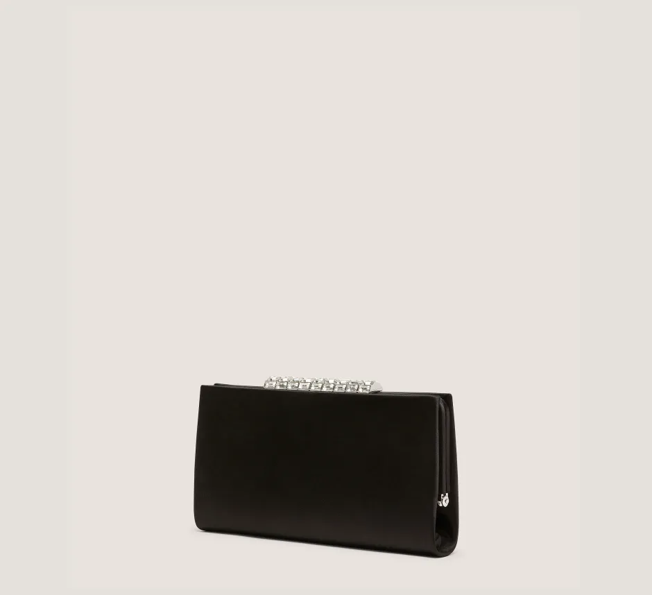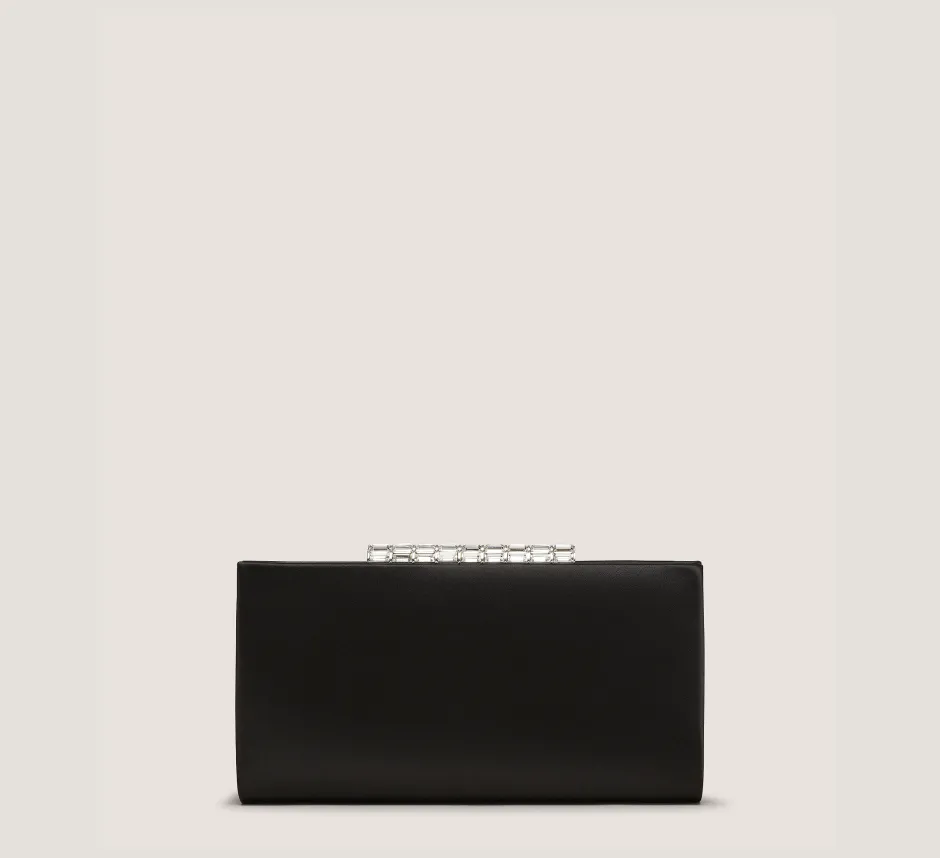 Complete your next special occasion outfit with the VIP CRYSTAL CLUTCH. It features a clasp closure detailed with crystal embellishments, and its sleek, compact silhouette is designed to fit everything you need for a night out. Its delicate, detachable chain strap enables it to be worn on the shoulder — depending on your outfit.