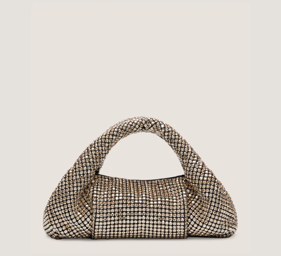 This mesh fabric is meticulously adorned with crystals. Due to the nature of this material, it requires special care: Avoid contact with coarse surfaces and materials. To clean, use a soft, dry cloth to gently remove loose dirt. For more extensive cleaning, please engage a professional cleaner. We recommend storing your handbag in its SW dust bag when not in use.