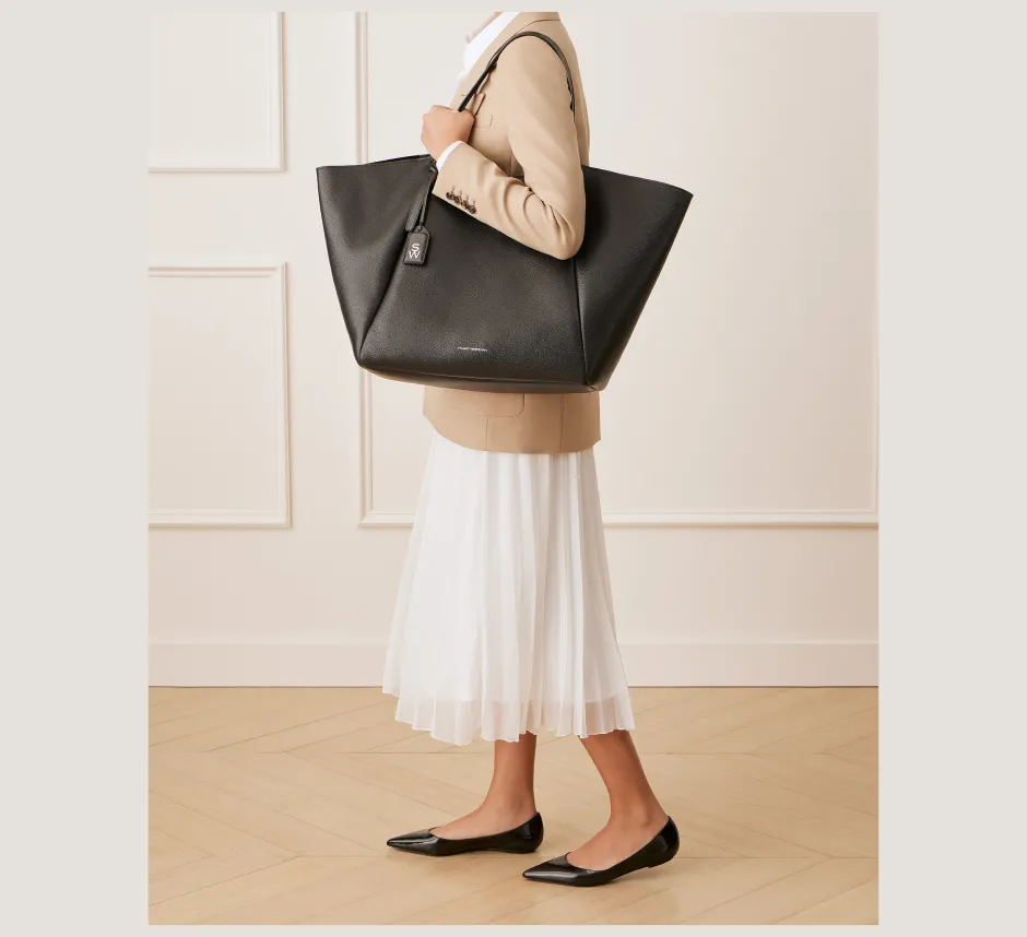 The GOGO TOTE stands to be your new everyday bag. Engineered for versatility, this softly structured silhouette features collapsible sides that can be folded in or expanded depending on your look, as well as sleek shoulder straps that can be adjusted to your desired length. Crafted by SW artisans in Italy, this spacious style is sized to fit your everyday essentials, including a 16-inch laptop, making it the ideal option for work and weekend alike.
