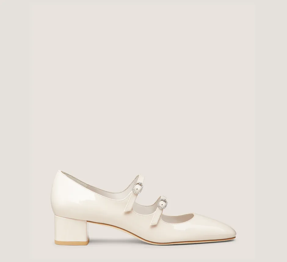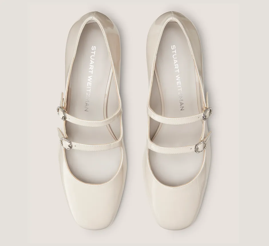 The CLARIS MJ 35 PUMP delivers our glamorous twist on the trending Mary Jane silhouette that works for daytime, too. Crafted by SW artisans in Spain, it features a double-strap construction, each detailed with a crystal-embellished buckle. It is finished with a low, 35-mm block heel for a wearable and comfortable lift.